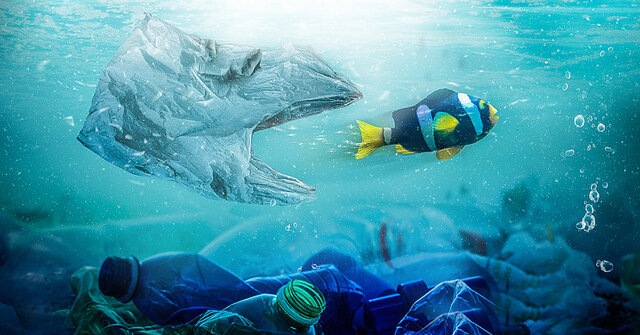 اقیانوس ها و دریاها بیشترین مناطقی هستند که در معرض آلودگی پلاستیکی قرار می گیرند. این آلودگی به این دلیل مورد توجه فراوان واقع گردیده که پلاستیک ها می توانند توسط پستانداران موجود در دریا به عنوان غذا بلعیده شوند و موجب مرگ آن ها گردند.